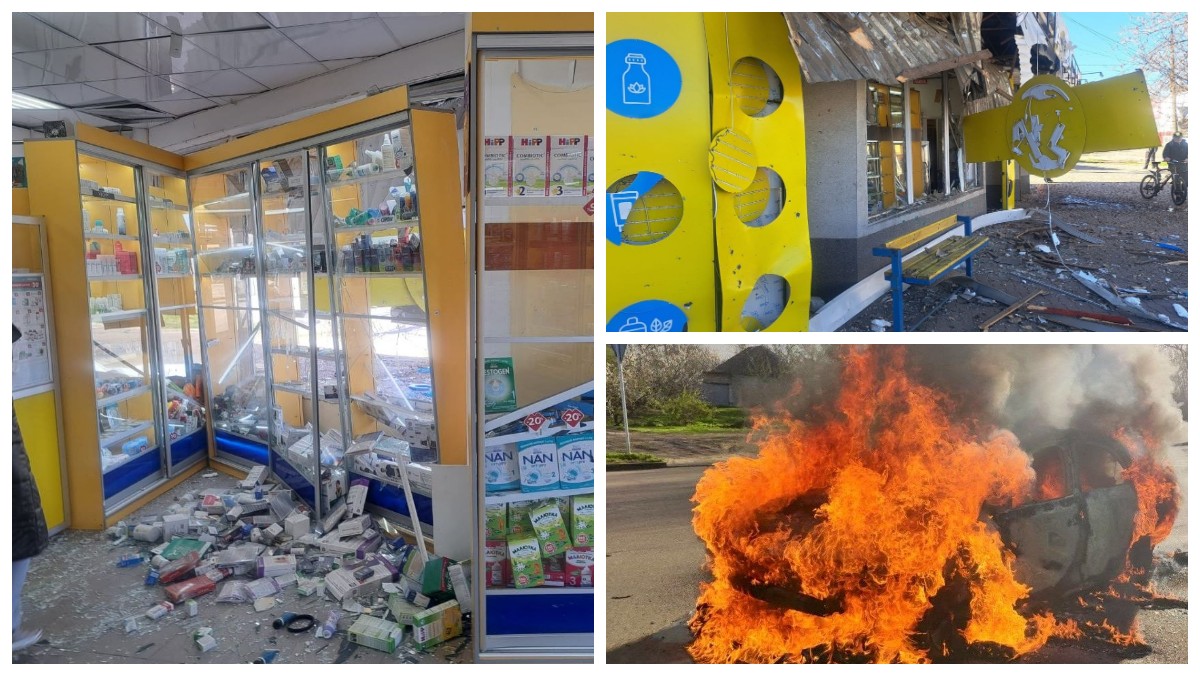 В місті пошкоджені багатоквартирний житловий будинок (вікна, балкони, дах), приватні будинки та господарчі споруди, аптека, легкові автомобілі, внаслідок одного з влучань виникла пожежа автомобіля.