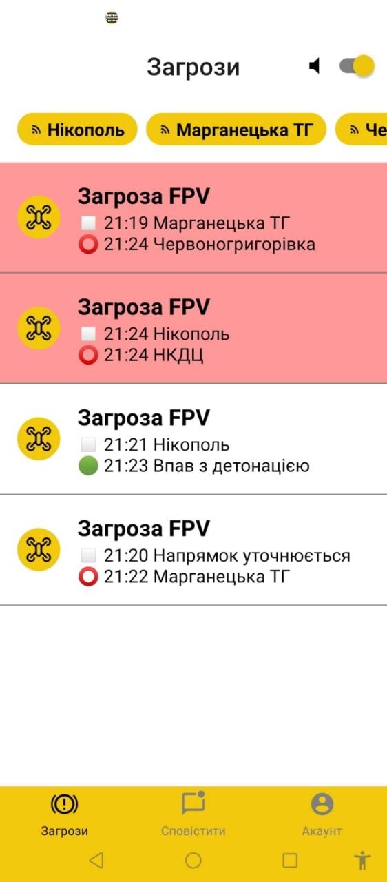 В додатку можна дізнатися про загрози з повітря для всіх громад району